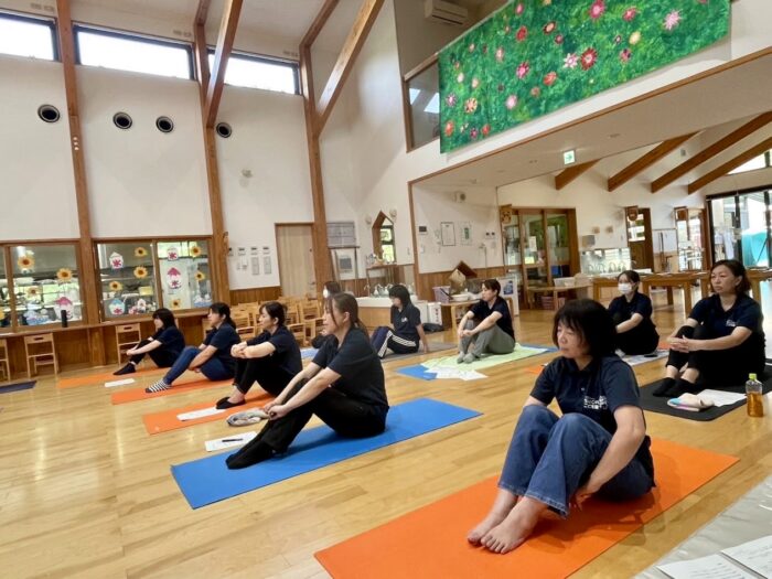 職員みんなで呼吸を合わせる。